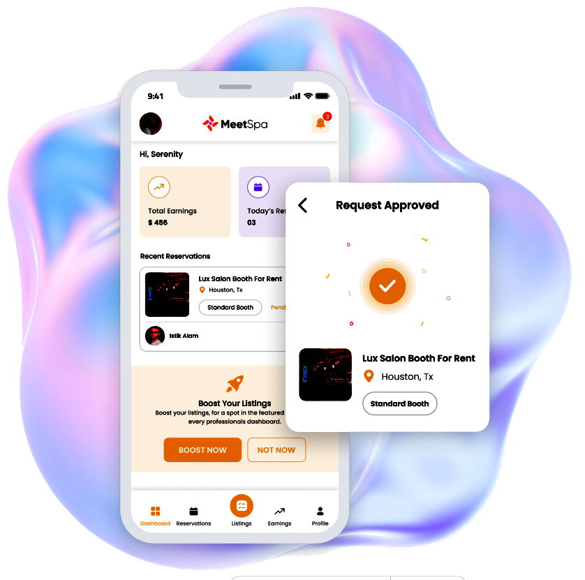 Be a part of the salon space-sharing revolution that redefines how you rent and profit in the beauty industry. Conveniently manage your calendar, direct booking reservations, & earnings all on our app. Meet your new receptionist.